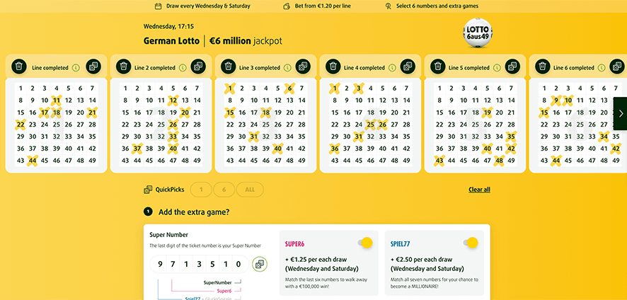 Plus, with Lottoland, you'll have one advantage that German players don't have – the ability to pick your own Super Number from a range of 0-9, or, once again, opt for a quick pick by pressing the Quick button.